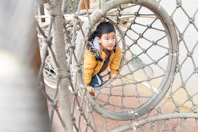 滑梯玩尽兴了,边上还有勇敢者道路等其他的小设施可以玩耍。