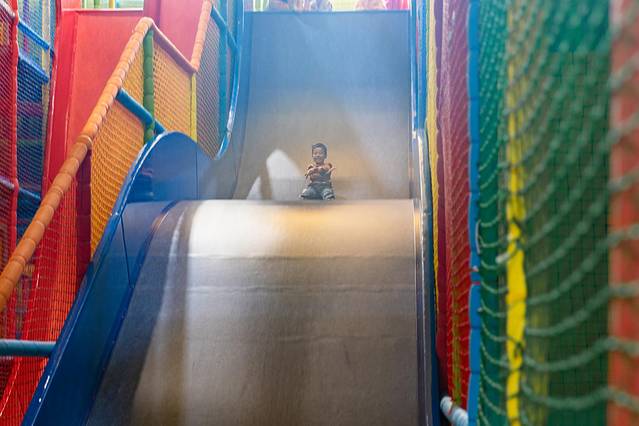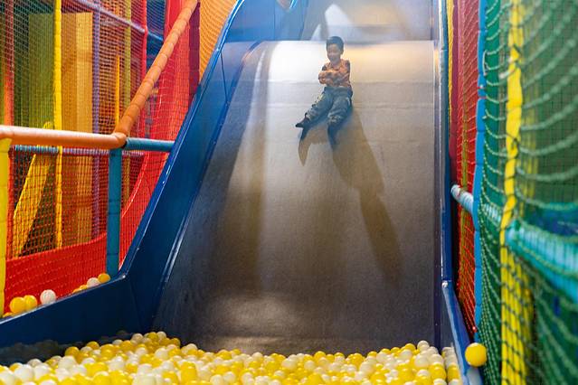 还没等爸爸寄存好鞋子,狍哥已经迫不及待的冲进了一楼的滑滑梯世界,这里是各种各样滑梯组成的游乐场,这里也是大小朋友聚集,最热闹的地方。