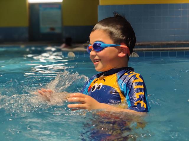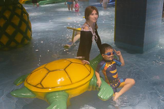 看在恒温泳池里,扑腾的一上一下,虽然还是枚旱鸭子,一点也不影响狍哥喜欢玩水的乐趣,和爸爸一起打个水战,玩的不亦乐乎。