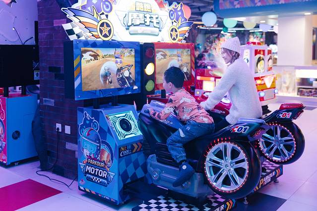 这里的游戏项目非常丰富,有摩托车、赛车、钓鱼、投篮机、马车、保龄球等~