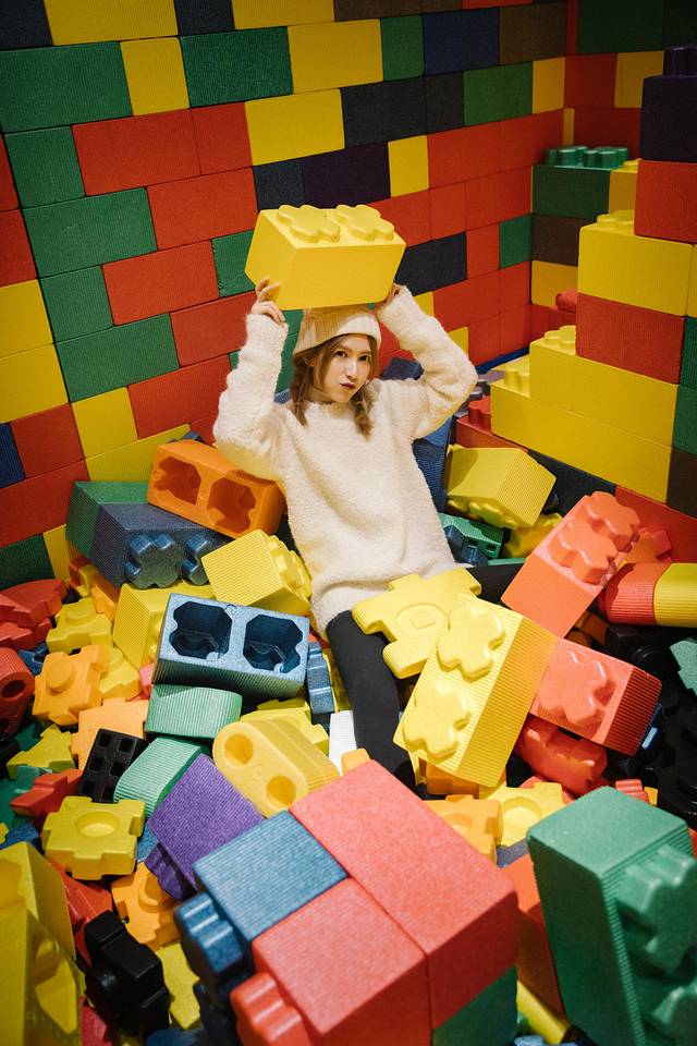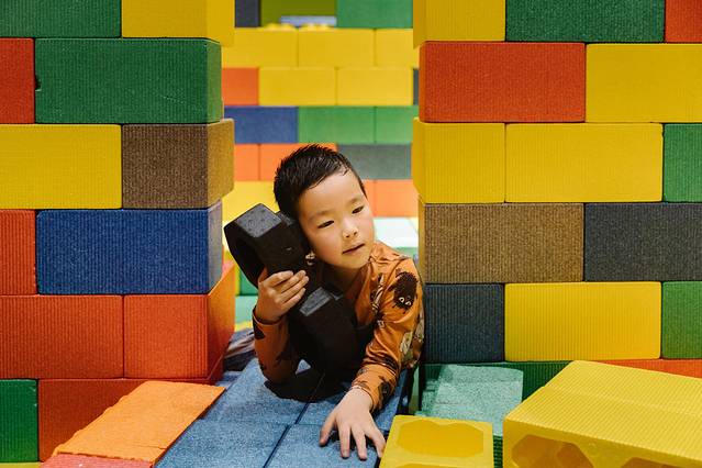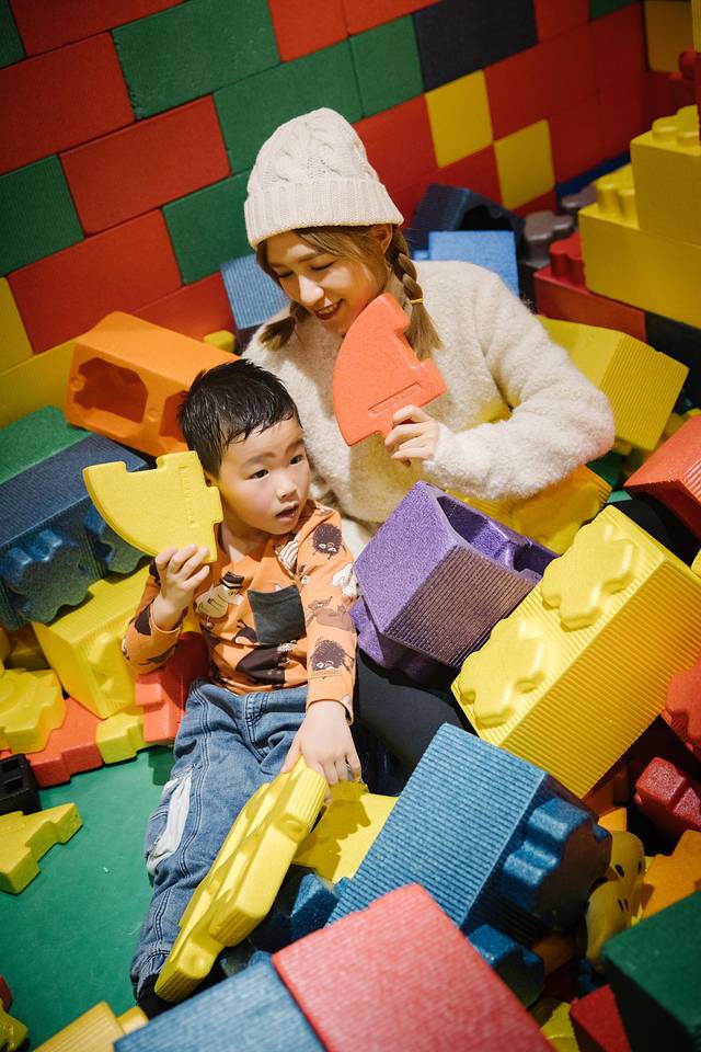 在家里狍哥非常喜欢玩乐高,此时看到大型的泡沫“乐高”天地,狍哥又兴奋了。埋着头在积木世界里找着搭建房子的配件,不一会儿,就搭了一间小屋出来,说准备在里面睡觉了~