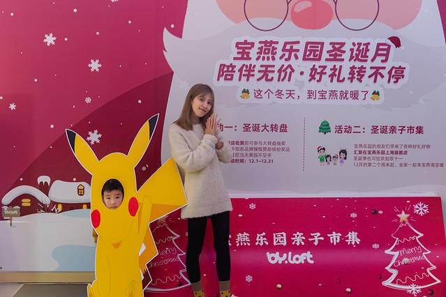 临近圣诞节,宝燕乐园前装置了一颗巨大的圣诞树,上面挂满了挂饰,好看极了,狍哥拉着我一定要在这里合个影。