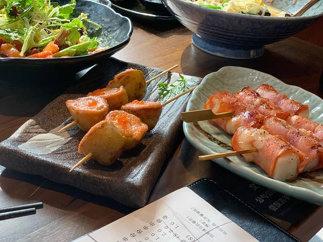 「鹌鹑蛋」有点咸了,还好只点了一串。「明太子芝士土豆」这个有点踩雷,是普通的土豆,上面加了芝士,又甜又腻又普通,想试试的话点一串就行。