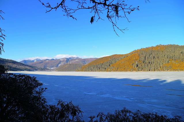 不过冬季的属都湖还是有一个地方比较具有魅力,清晨的时候会有雪粒,白茫茫的一片,还能看见草面上面会有一些猪在这边寻找食物,还能看见远方的雪山,高不可攀,高冷而圣洁。