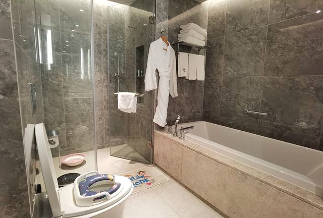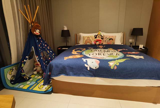 今天要换酒店到机场附近,酒店是奥克伍德服务公寓,我嫲前台加钱升了大嘴猴亲子套房,多了机器人、帐篷和小秋千滑梯。殊不知在房间的时间那么有限。我都来不及给机器人开机……
