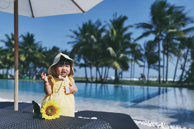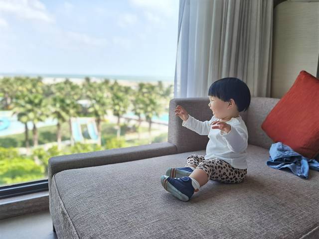 对了,给大家介绍下我们此行的行程安排,因为我小,我嫲安排以住酒店为主,酒店必须有沙滩、海景和亲子设施,房间必须宽敞,方便我练习走路,经过将近一个月的挑选,我嫲选出的酒店有陵水香水湾万豪和海棠湾的嘉佩乐,前者600,后者每天3000,但基本满足我嫲的需求。