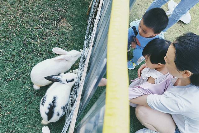 然后就带我去了儿童俱乐部,对了,我嫲提前在酒店的微信群里预约了“喂小动物”。不过到了那才知道就是拿白菜喂小兔子,兔子就兔子吧,反正我啥动物也没见过。不过我更感兴趣的是旁边的秋千和攀岩墙,让阿姨带我玩了一会,算算时间,又要睡觉了。