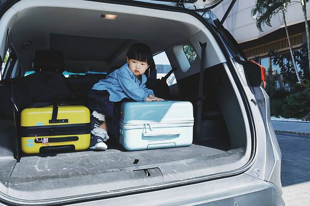我们一共带了24寸大箱子一个,20寸登机箱一个,一个推车,一个妈咪包,一个背包,一个小包。