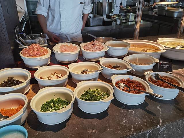 听我嫲说,今天的行程是没有行程,宅酒店,那我太高兴了。昨天发现还有两个泳池和儿童俱乐部没有玩呢!于是我们仨先去吃早餐,这个酒店的粥档大厨可真好,阿姨问有没有不加盐的粥,大厨说专门给我炖一碗,于是阿姨选了鱼肉鸡肉胡萝卜,我一个大早就要享用美食啦。由于这一碗太大,勤俭节约的阿姨还拿辅食罐装了一罐给我当午饭吃。解决完我的早餐,她俩也来来回回吃了几轮。