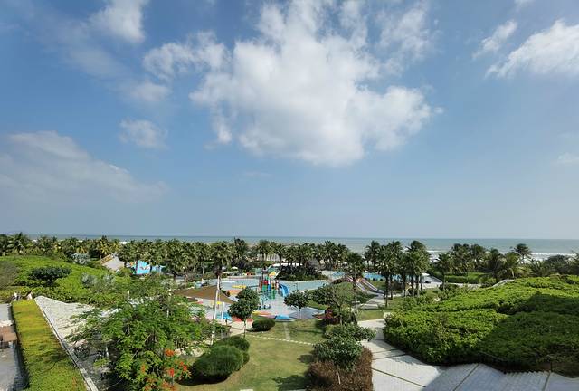 上午吃完早餐我开始睡早觉,嫲嫲和阿姨还是整理行李,天知道带我出门一趟要有多少东西,反正大包小包都是我的。等我睡醒刚好中午,我们退了房驱车前往嘉佩乐。行政划分上,嘉佩乐所在的土福湾是属于陵水的,但地理位置土福湾紧挨着海棠湾,因此更多时候是被当成海棠湾最远的酒店。从我们所在的香水湾过去,刚好45分钟,全程高速。