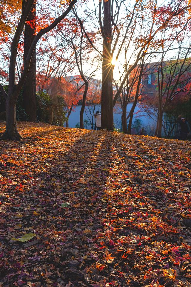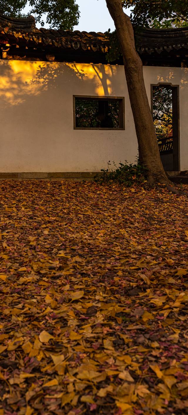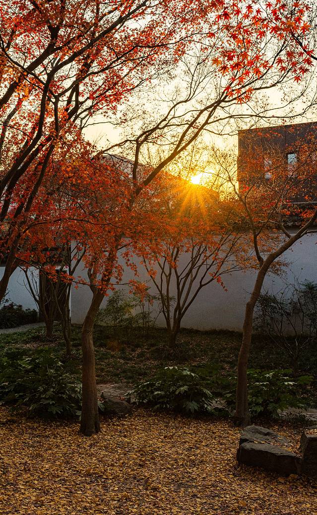 秋霞圃枫林隔壁墙外是嘉定博物馆