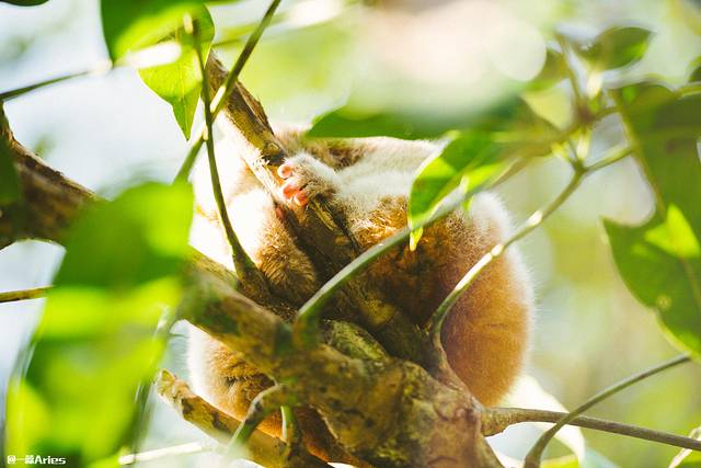 一边犀牛吃的正香,另一边两只蜂猴挂在树梢睡的正香,无论树下站着多少人围观,缩成一团的小家伙手都懒得动一下。看着它们懒洋洋的样子,让我想起了《疯狂动物城》里的闪电。