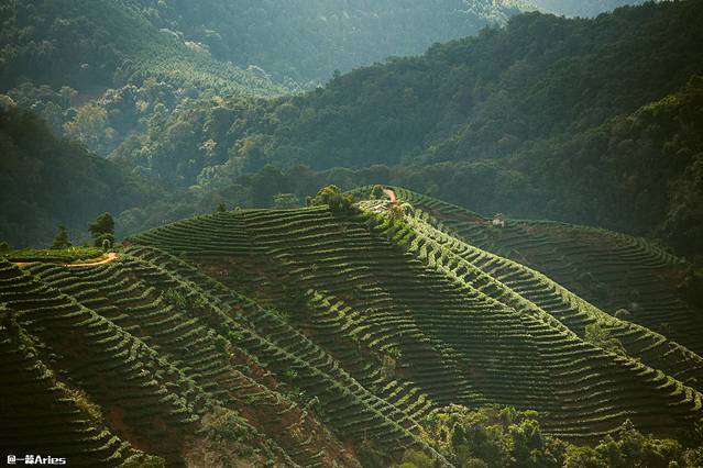 世界最好的咖啡,几乎都与北回归线有关,普洱就正好就位于这条“黄金种植带“上,高山云海中,雨林茂密,不仅有成片的茶田,还有着茂密的咖啡林。