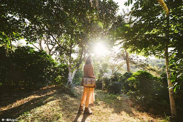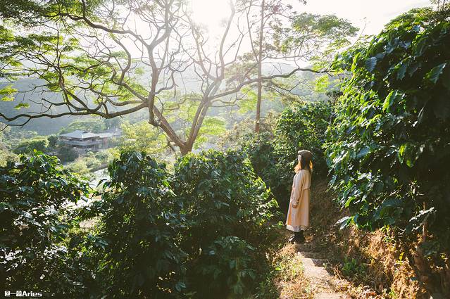 阳光穿过林间,300多亩郁郁葱葱的咖啡树在山间整齐排列,生态环境是肉眼可见的完美。