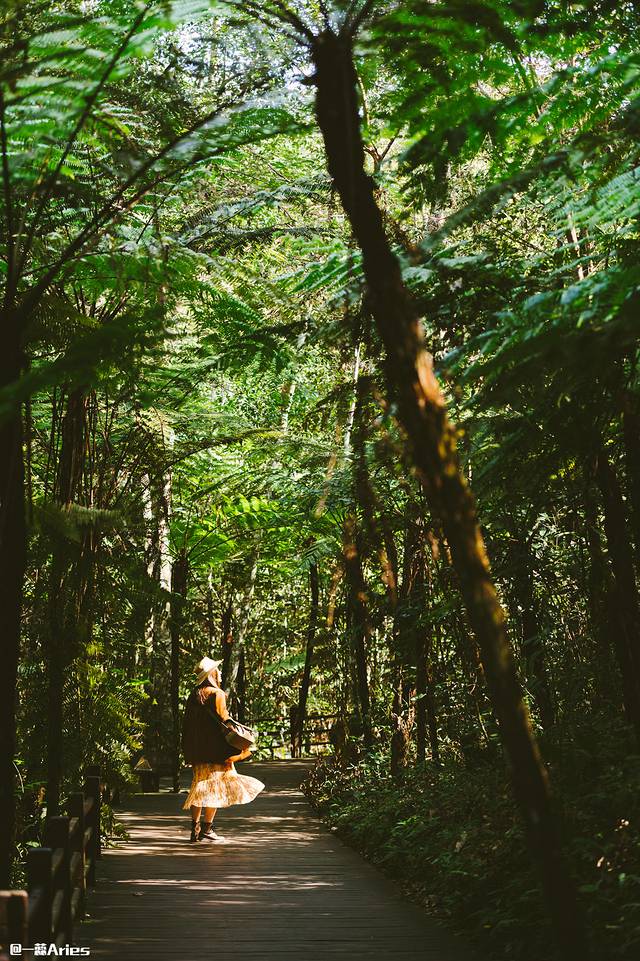 登上栈道,置身于这密不透风,遮天蔽日的雨林深处,竟有恍然隔世的感觉,阳光透过远古植物桫椤泛着光斑,“绿光森林”名副其实。