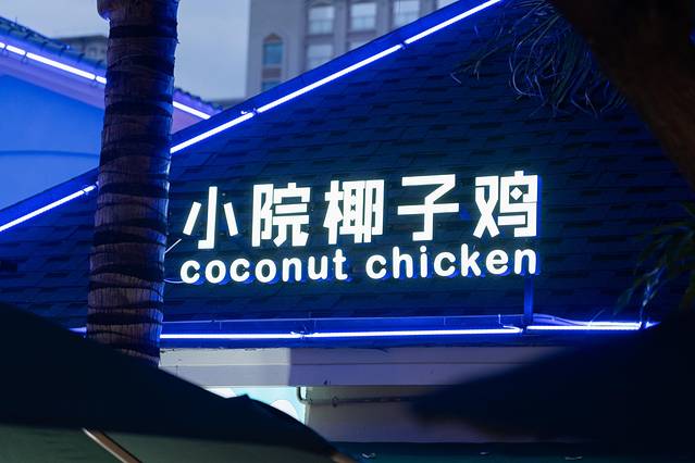 来 海南 就是要吃椰子鸡呀!吃过很多家椰子鸡,这家环境真的超舒服,开放式的庭院被绿植和雾气环绕~还有人造的小桥流水,在这里吃饭真的可以多吃几碗!白色的桌椅和热带绿植真的很像在雨林里面用餐!服务不错会帮助煮菜和提醒吃鸡肉的最佳时间!