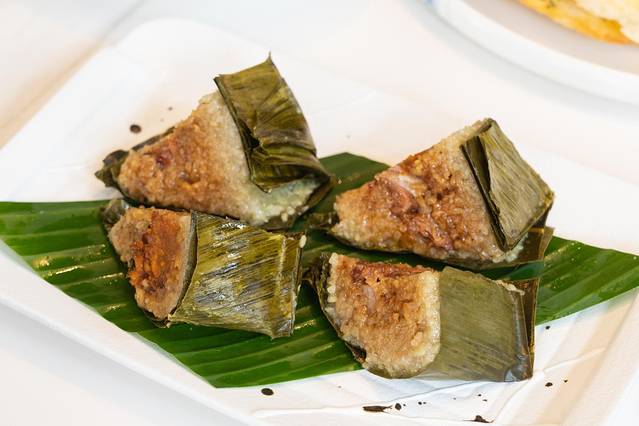 2)安定黑猪蛋黄粽子:甘甜的糯米很软搭配自养的黑猪肉,肥而不腻,而且粽子料很足!每桌都必点!