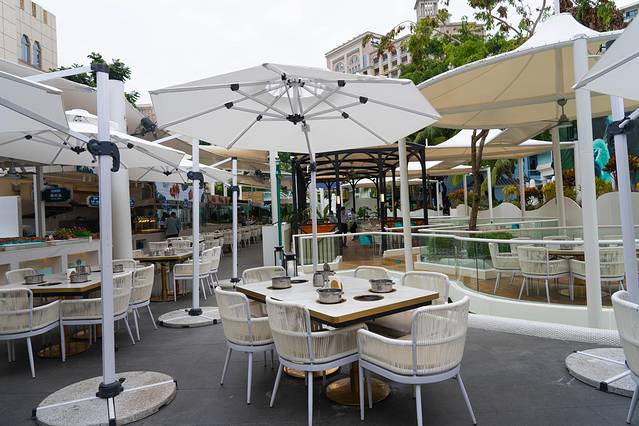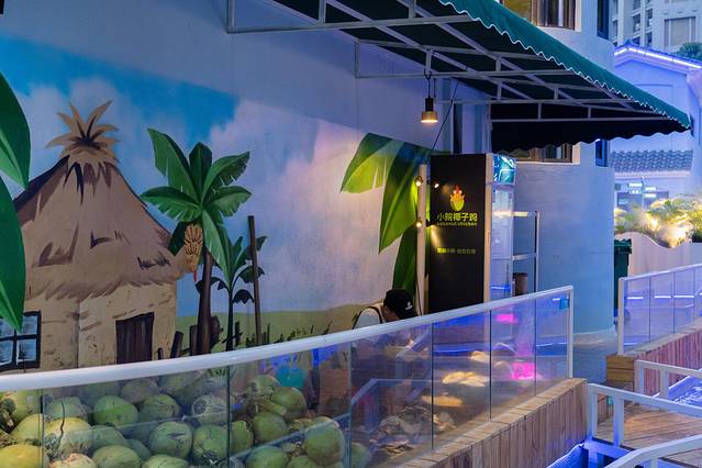 这家店是在户外吃,环境很棒是坐在院子里一样!晚上的灯光很美,绿植、加湿器、音乐、还有两个透明的泡泡屋共同营造的就餐环境,还有人工打造的河流,非常梦幻,像坐在热带雨林里面吃饭!吹着海风吃着海鲜的感觉,真的很好!