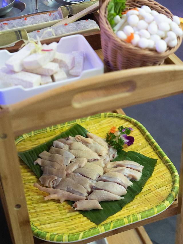 椰子鸡:选用新鲜的三颗椰子和 文昌 鸡,味道很鲜甜!都是当场开的新鲜椰子,锅底还有红枣、马蹄等,养生又香甜!所以是一定要喝汤的!椰子鸡都是三分钟煮熟,服务员会放一个计时器,三分钟之后的鸡肉,真的很鲜嫩,并且融合了椰子的香甜,搭配这边的特色蘸料,非常地道的 海南 味!