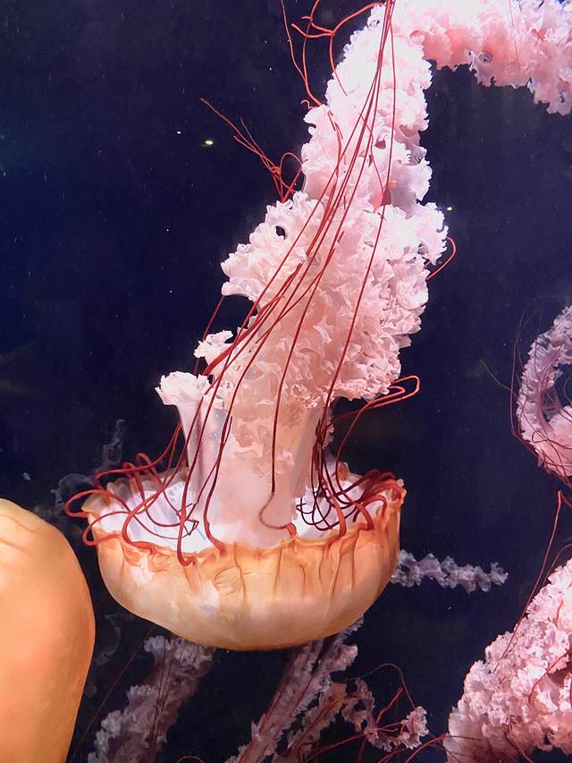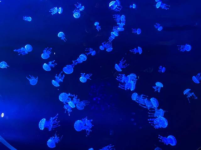 往前走还有超大屏的景观可以看到更多种类的海洋生物!水族馆有两层,二层也分布了很多小动物,水母区拍照也不错,因为它们真的都超美!水族馆比较特色的打卡点是一个圆形的景观,拍出来构图会很好看!