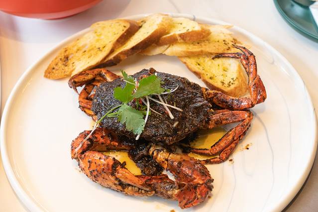 1) 海南 胡椒炒蟹:有三种蟹可以选择:膏蟹、青蟹、珍宝蟹,味道也有多种做法:胡椒、辣椒、咸蛋黄和咖喱的。我选的胡椒的,海蟹蟹肉很嫩很入味,制作是师傅会把壳敲开让它更入味!黑胡椒真的是下饭神器,让我食欲大开!