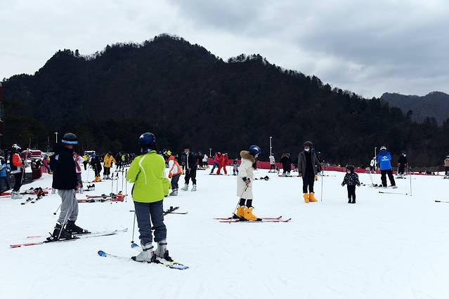都说秦岭最好玩的地方在紫柏山国际滑雪场,这里拥有初、中级6条雪道,是最适合初学者的滑雪场,我也按耐不住一颗想滑雪的心去体验了一番。正好赶上周六,现场还会有 雪乡 小集,社火表演等节目,气氛非常热闹。