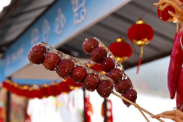 外面的小摊,有现榨的爆米花,冰糖葫芦、烤红薯、画糖人、煮玉米......不足百米长的小集聚齐了最经典的乡村小吃,有种童年的味道。
