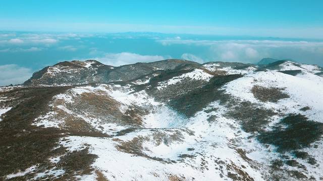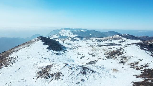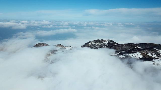 爬山的那段路还挺累的,但是当爬到山顶那一刻的感觉,又多了几分难以言表的惊喜。在山顶看风景特别挑天气,如果是大雾,就伸手不见五指,撒也看不到。庆幸我们运气爆棚,走到山顶的时候就已经是晴天了,等到雾散云开,在无人机的视角下还看了一场翻腾的云海。