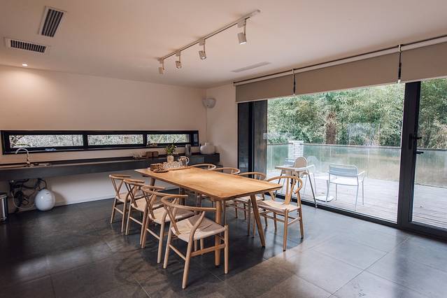 我们当时住在一号院的,这是一栋设有三居室的大院子,停车的地方需要经过一条河,一道桥。远处的炊烟袅袅,树影斑驳,呈现出的景致像极了小时候回外公的家。