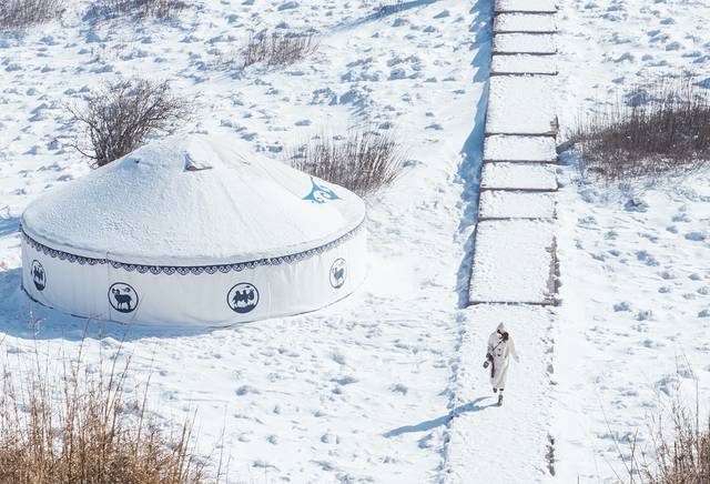 每一处都特别适合打卡拍照,每一个脚印都在雪中留下了深深的印迹,听着吱吱的声音,觉得时光似乎都变慢了下来。