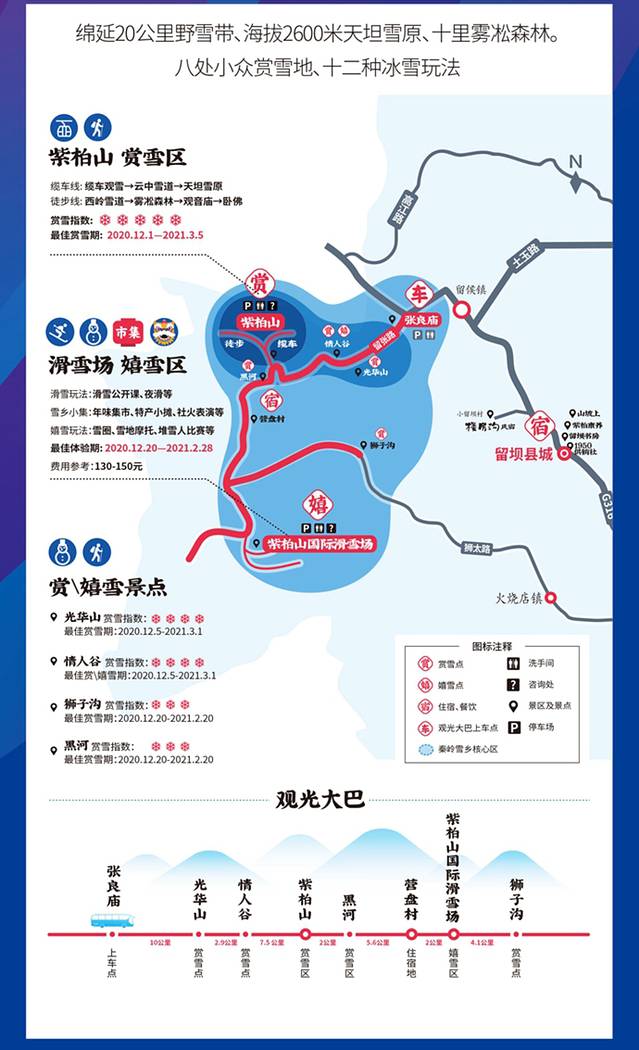 零下三十度以下的东北太冷,疫情也不敢跑的太远,网上搜索攻略便把目的地锁定在“秦岭雪乡 ”。这个地方从重庆坐动车过去非常方便,三个多小时就到 汉中 了,然后转车即可直达目的地。 留坝 得天独厚的地理位置,是南方不可多得的赏雪地,核心区域主要集中在紫柏山景区和紫柏山滑雪场内,来到这儿就像来到了童话世界一样,纯净无比。