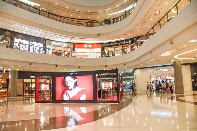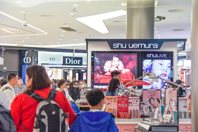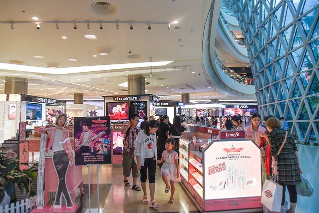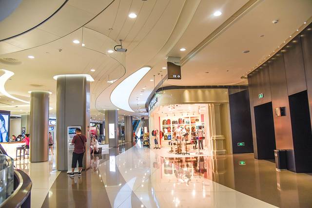 这里分为A区和B区,A区一二层主要是一些彩妆类的国际大牌, 比如 雅诗兰黛、SKII、杨树林、Mac、香奈儿等,B区是一些服装类的大牌,B区三层是美食区,饿了可以在这里吃饭。两个区之间三楼是连通的,在A区一层的服务台可以免费寄存行李。