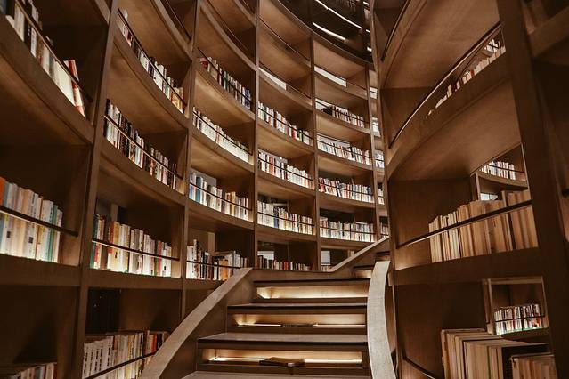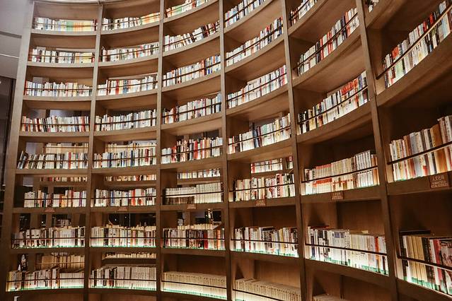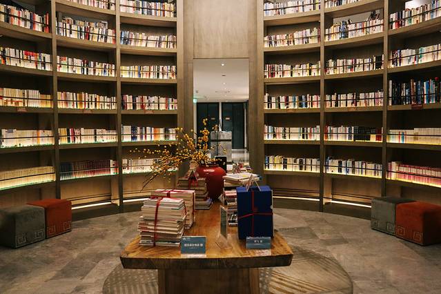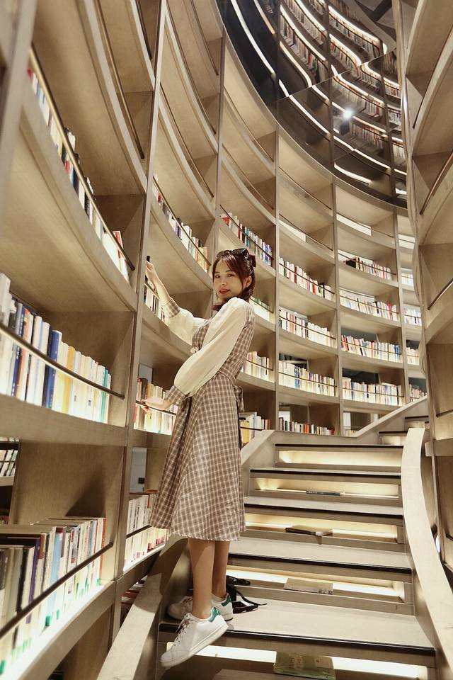 自驾来到书店已经天黑了,夜色中可见爱上书吧的光影,一楼是餐厅,二楼就是书店,整个书店最大的特色就是那高达十几米的大书柜,还有专门的取书梯,第一次看到这么高的书架,还是很壮观的!