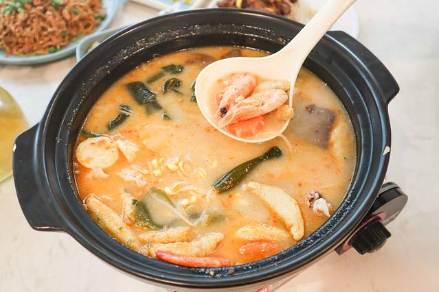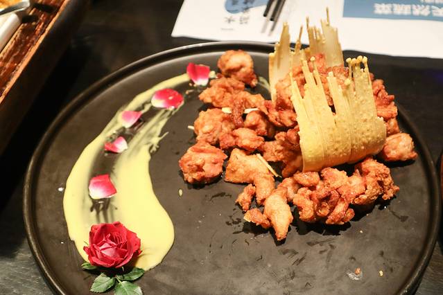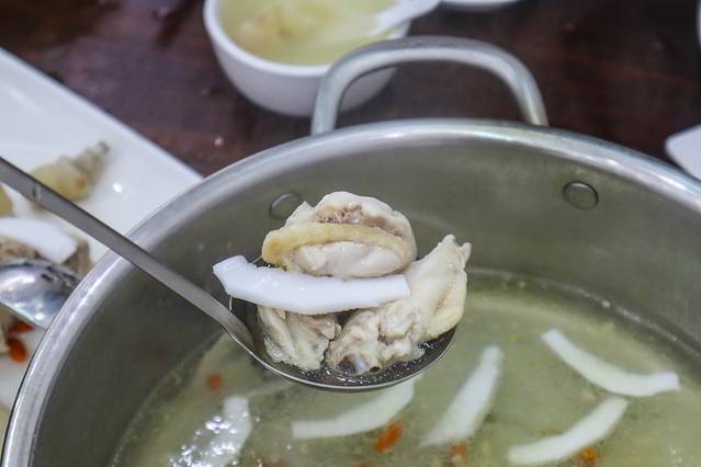 首先是汤底,选用了新鲜椰子汁和新鲜鸡肉,汤底浓郁,鸡肉也非常鲜嫩,再蘸上服务员亲自调制的蘸料,每一口下去都是满足。