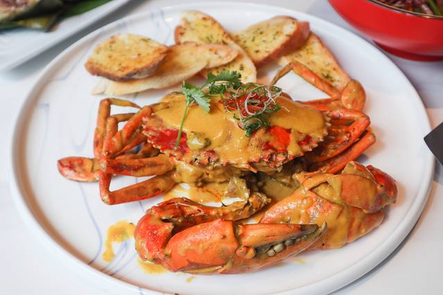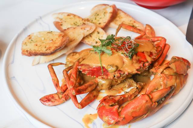 这家店主推各种炒蟹,有各种口味的,我最爱的是咸蛋黄酱炒蟹,新鲜的蟹肉外面裹着一层咸蛋黄酱,咸蛋黄口味我真的太爱了,两个人第一时间把炒蟹吃完了,连蟹脚都没有放过~