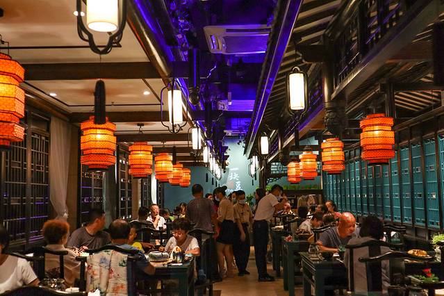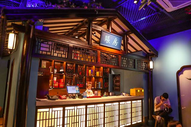 店内环境非常的古色古香,从大门口进入便可见“账房”,再跨过门槛可见大厅,大厅的装饰也是格外特别,有传统的小庭和火红的灯笼,在里面用餐仿佛穿梭到了远古时代。