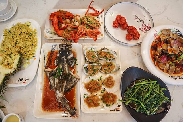 我们点了 波士顿 龙虾、炒黑口螺、蒜蓉蒸生蚝、蒜蓉粉丝蒸大圆贝、贵妃笑品虾、清蒸石斑鱼、菠萝炒饭等。清蒸石斑鱼非常的鲜嫩,且一点腥味都没有,清蒸之后再淋上独特的汤汁,太美味了。