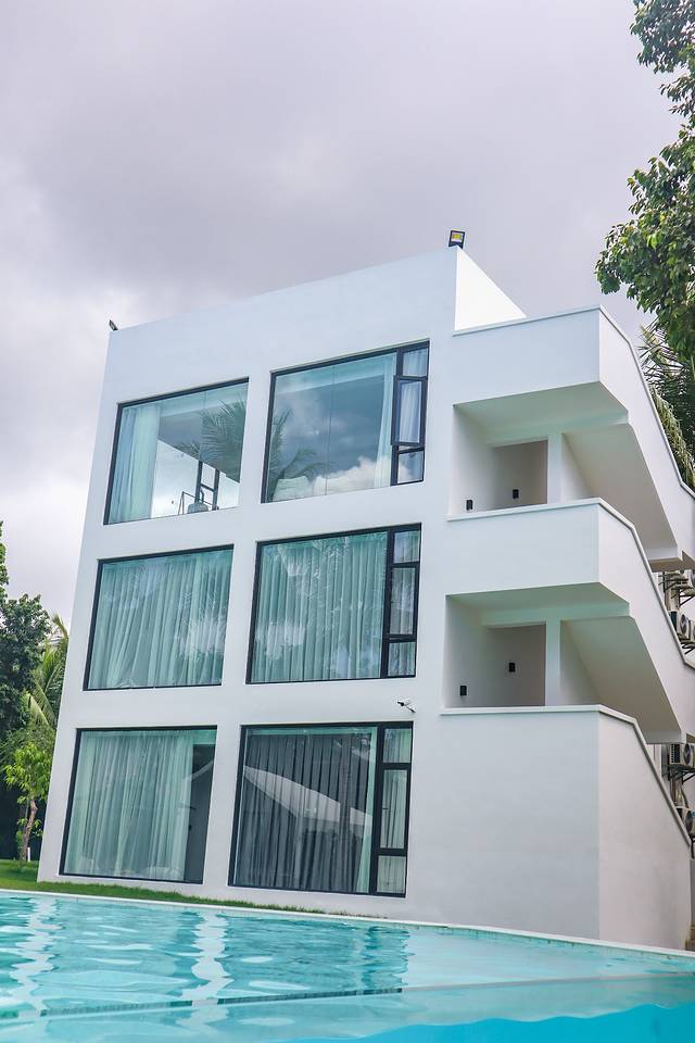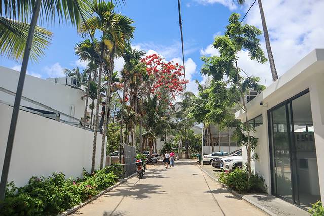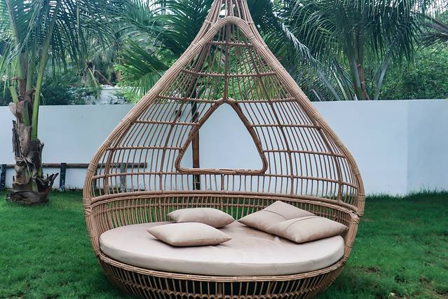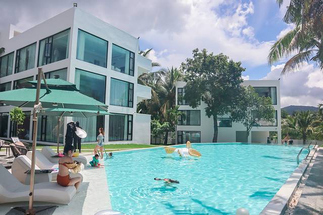 这家民宿所占的面积非常大,里面有好几栋独立的客房、餐厅、游泳池、休闲吧、洗衣房等,就算每天不出去玩呆在民宿,也不会觉得无聊,清晨可以坐在小院的摇椅上吹吹海风,大中午可以呆在客房里看看电影,晚上可以游游泳或者点一杯饮料,静静享受慢下来的时光。