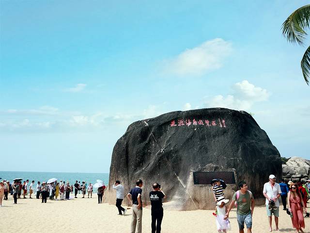 在天涯石和海角石的前一站就是南天一柱石,南天一柱就是老版两元人民币的背景图案背景,记得我第1次来这里时,还说这是我卖出打卡人民币背景的第1步。而我这次再来感觉已经完全不同,因为在这之后我还去过桂林的20元人民币景区。
