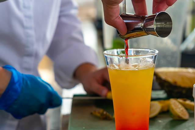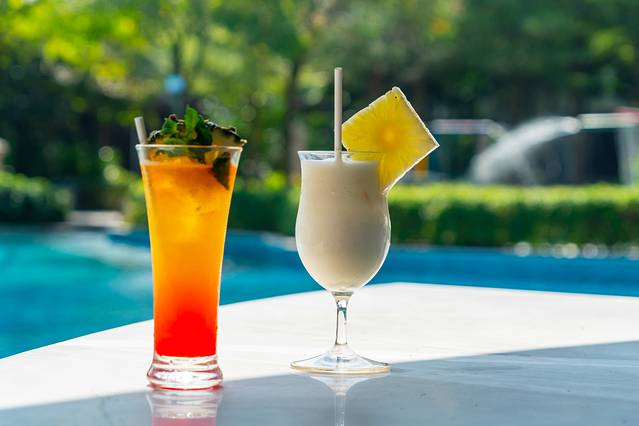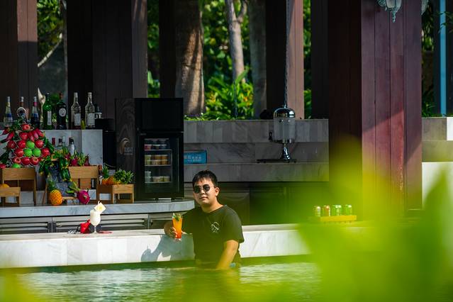 鸡尾酒现场精心调制,吧台直接面向泳池,让泳池0距离拥抱鸡尾酒,享受夏日清凉,品味醇香芬芳~开启索菲特假日一天~