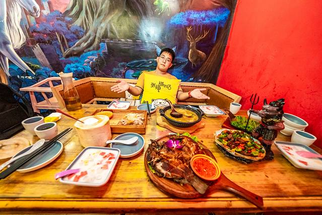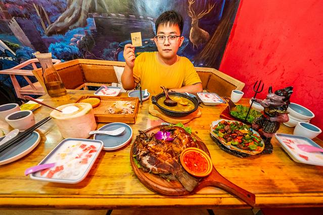 环境:店门口的两只猫,如果有带宝宝,或者带女朋友来的伙伴,这两个地方非常适合打卡拍照,一秒拍出网红格调照,给人一种很卡哇伊的感觉。店内的装修,就好像走近了,猫猫的洞穴,看似杂乱无章,一会儿是洞穴,一会儿又是蘑菇屋,但设计的却又井井有条。就餐环境跟店名非常符合,来他家,不光能收获三亚美食,还能收获美照!