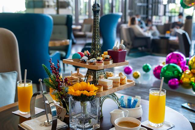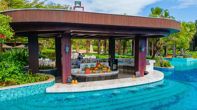 在索菲特的第一天,赶着上午的明媚暖阳,来到酒店前的恒温泳池,游泳戏水晒太阳,再来上一杯鸡尾酒,享受畅快假期。