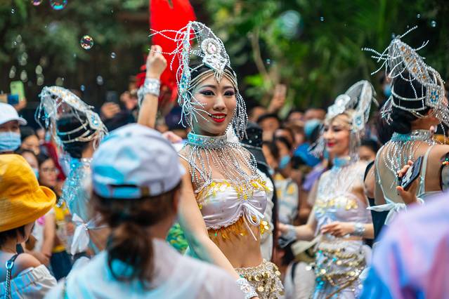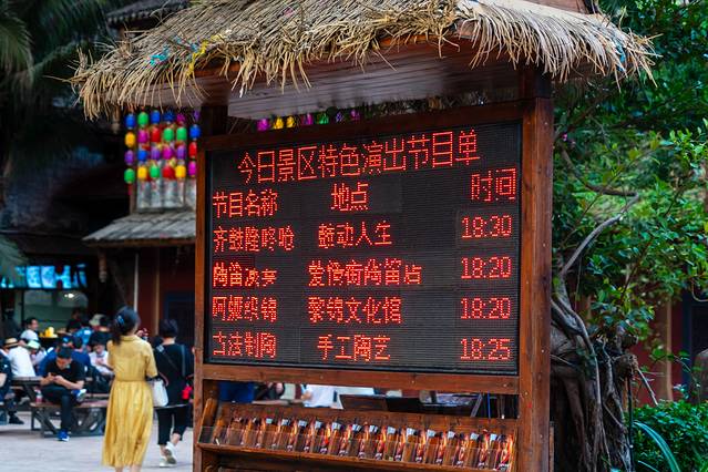 老规矩,一进门自然是先拿地图,再看路牌,先摸清楚外场演出都有啥,分别都有哪些节目都在那,这样才能够算不白来,绣球招亲,街头快闪,虽然都是千古情的老项目,但明显能看得出,三亚的更嗨更时尚。