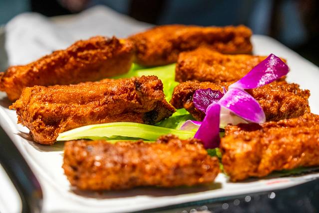 盐焗文昌鸡肉,搭配上张猫猫家秘制的酱料,口感和味道都ok,肉质不柴不腻,鸡肉的味道也很入味儿,不咸不淡所有的味道都恰到好处,而且文昌鸡也是海南美食的必点菜,真的可以尝尝哦~