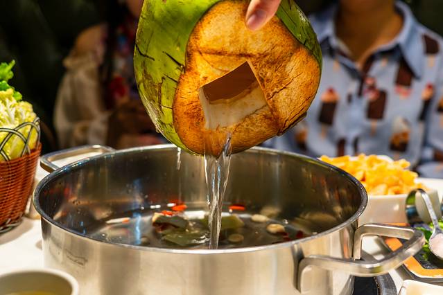 服务:服务员可谓是眼观六路,耳听八方。什么时间该下椰子,什么时间该下文昌鸡肉,文昌鸡肉要煮多久,服务员都会告知,并且来帮客人下菜,还会用小鸡形状的机械倒计时器,为客人计时鸡肉的时间,非常热情。鸡肉煮好后,服务员还会问客人的口味儿,忌口什么的,然后帮客人调配酱汁蘸料,服务过程也很变通,贴心,周到,让人就餐体验很舒服。