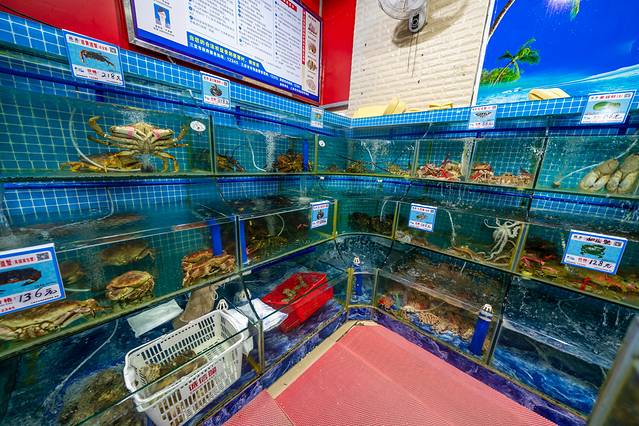 海鲜:直接在店门口现买,即买即吃,价格清楚,斤称足。店内也有电视,活动显示三亚海鲜市场价格,买的放心,吃的也放心。来过三亚的人都知道,三亚的大多数海鲜市场都是这种模式,有的是去市场里采买,然后拿到加工店加工,有的是直接就在商家里采购,然后直接在店家加工。