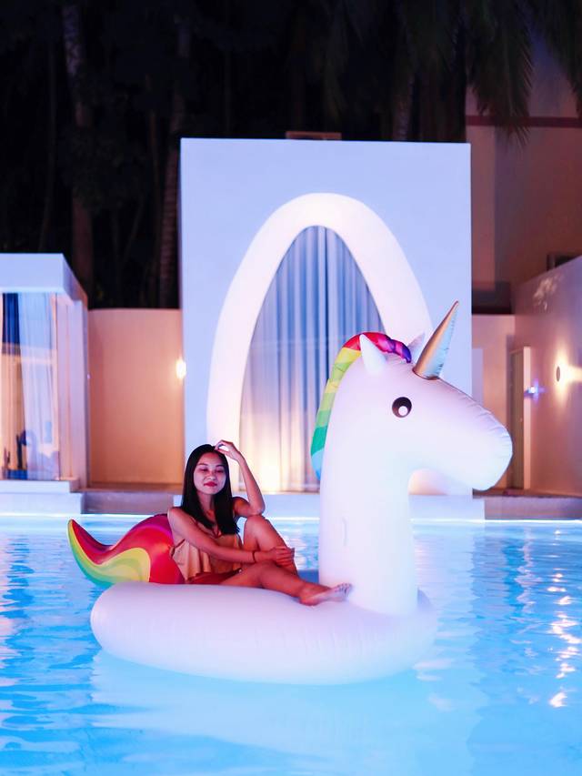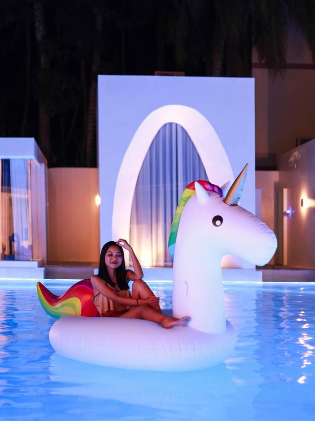 三亚 白天还真的是☀火辣辣,还好定了这个民宿,让我夜里回到民宿,拥有一个暖畅玩的家。直接在房间换好泳衣就下水游玩啦,各种水上网红道具,独角兽泡泡圈/玻璃船/天使的翅膀,不会游泳的人也可以有自己一片玩玩乐的天地💯