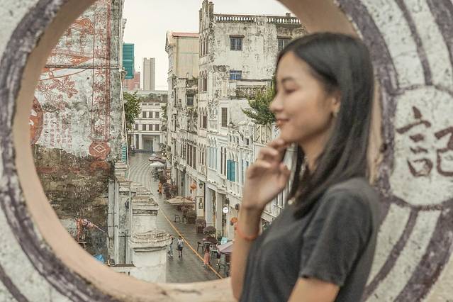 雨终于消停了一回,我继续穿梭下骑楼街街中,寻找不同俯视角度。根据我的攻略所得,还有两个角度在:国新书苑和见外民宿。