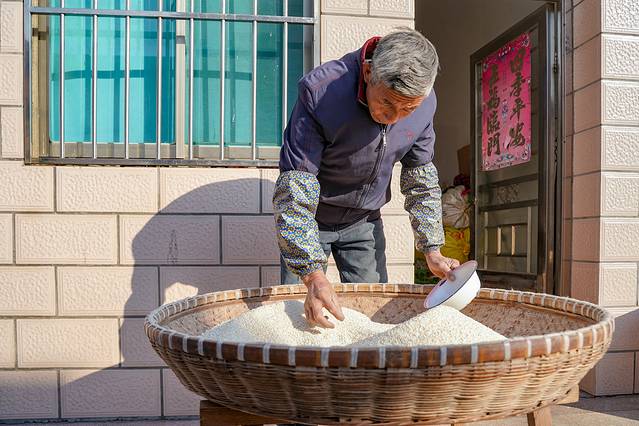 在老爷爷的耐心讲解下,我熟知了制作年糕的全过程。首当其冲的便是选择糯米,优越的水系为糯米的生产创造了得天独厚的条件,这里的糯米口感香糯,色泽洁白,营养更是丰富无比。