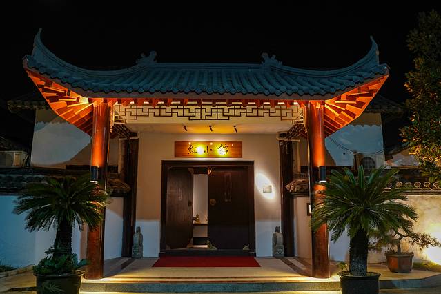 在海安城北的北海度假村,有这样一家独具一格的餐厅,名曰:红小馆,精致的门楼,昏暗的灯火,简朴的牌匾,“红小馆”三个大字映入眼帘,木门半掩着,陈旧而不失庄重,格调十足。远远望去,一尊菩萨雕像若隐若现,古朴中流露出一丝禅意,敬意油然而生。